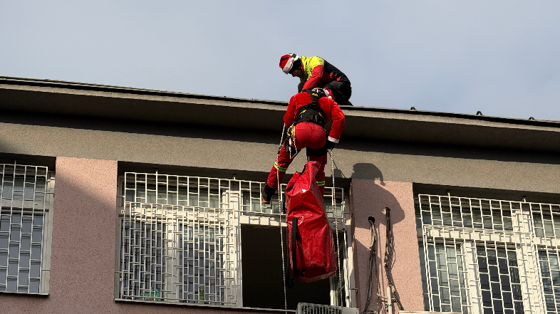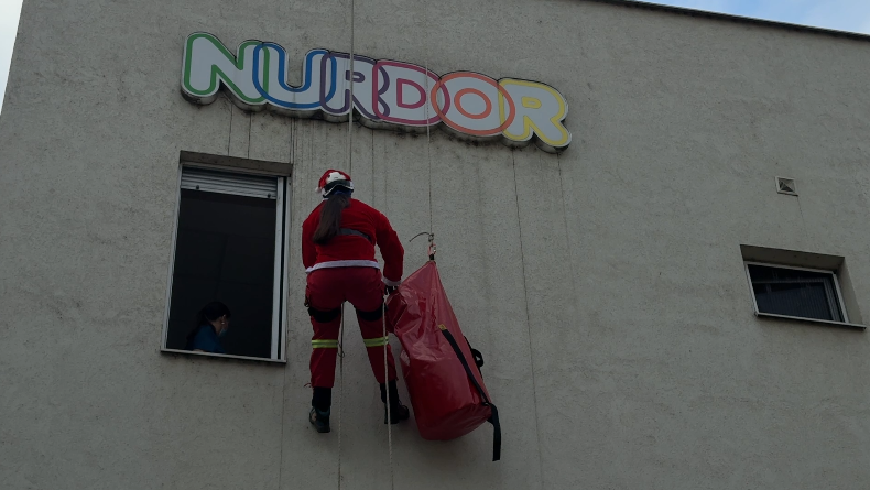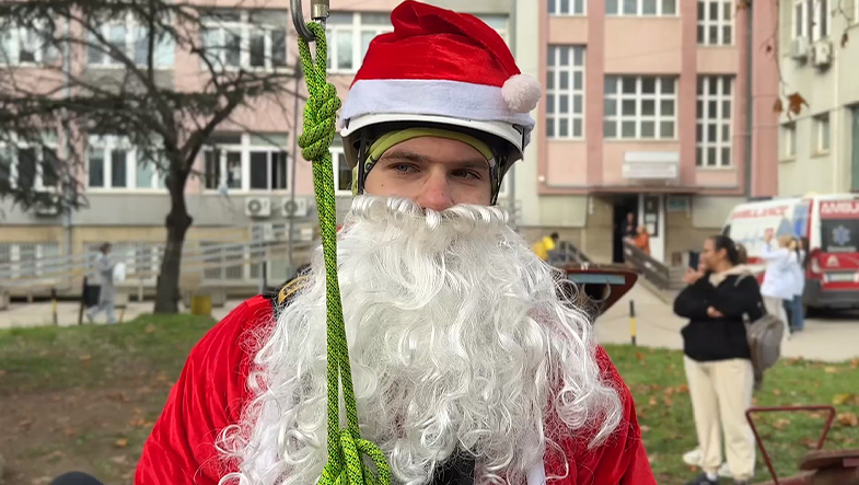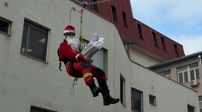 Mališani koji se tokom novogodišnjih praznika nalaze na lečenju u Univerzitetskom kliničkom centru u Nišu danas su doživeli poseban trenutak – Deda Mraz je, uz pomoć pripadnika Gorske službe spasavanja, sišao sa krova i kroz prozore doneo paketiće i radost.