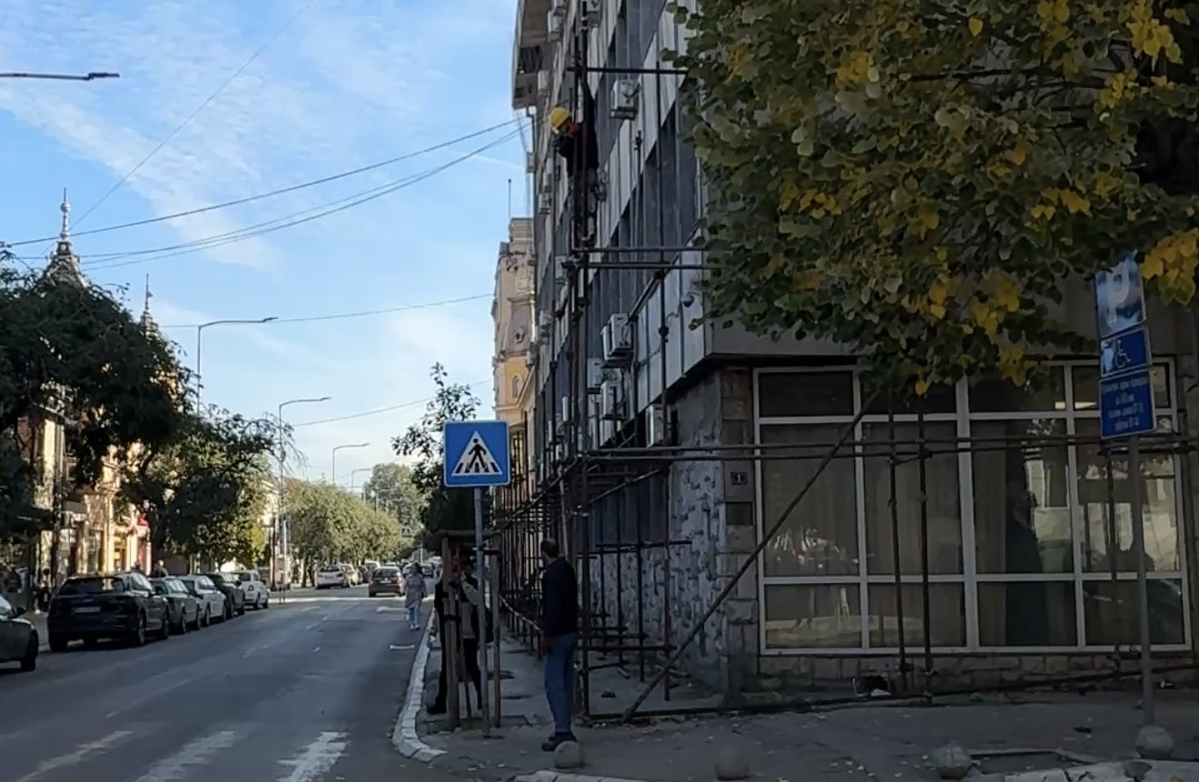 Grumuša je naglasio da i dalje važi rešenje građevinske inspekcije kojim je naložena sanacija objekta, ali da prostor trenutno nije bezbedan za prolaznike, zbog rizika od urušavanja delova fasade.