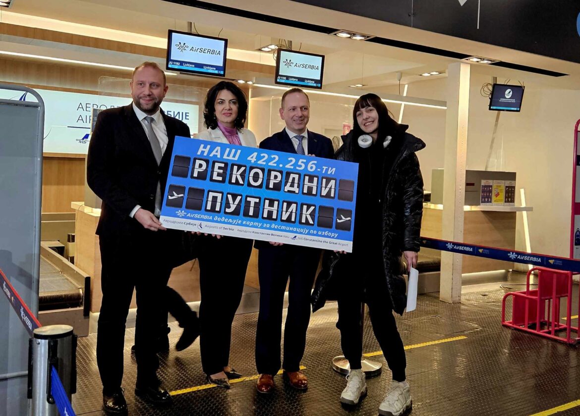 Aerodrom „Konstantn Veliki“ oborio je danas sopstveni rekord. Danica Mihajlović iz Svrljiga rekordni je 422.256 putnik. Ona je sa niške vazdušne luke otputovala za Ljubljanu, a iz ove zemlje će nastaviti dalje do Italije, Nemačke i Holandije. Time je niška vazdušna luka prevazišla istorijski rekord koji je postavljen 2019. godine.